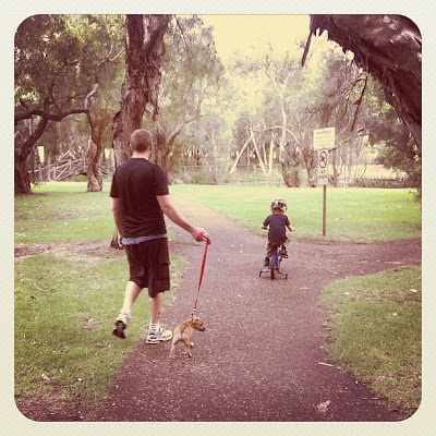I'm not sure I really need to keep blogging anymore, seen as we seem to be doing the exact same thing every day! Another trip to Whiteman Park. This time we went for a nice long walk, while Sam rode his bike and Jacob sat back in the stroller. Gorgeous way to start the day.