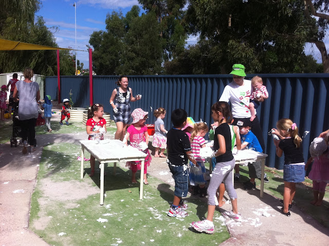 It was the boys daycare Christmas Party.. complete with Magician show, face painting, afternoon tea, shaving cream fight and of course, Santa!