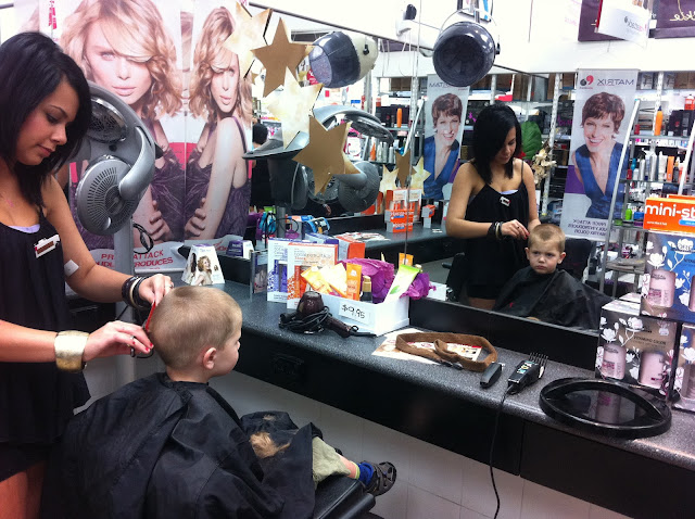 We all headed to the shops today, where Sam got a haircut ready for the big weekend... not happy Sam?