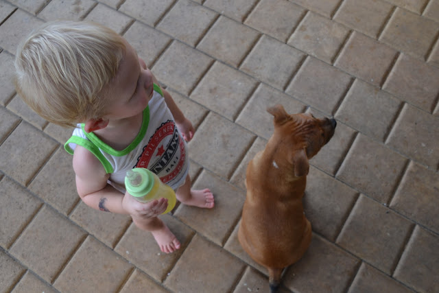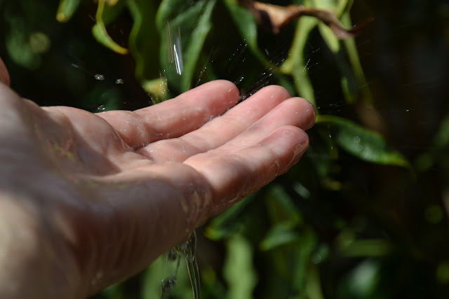 Lewy put the hose on the patio roof, so we could enjoy some 'rain' mid afternoon and take away the heat for a few moments.