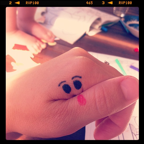 Sam and I made little faces with our hands... if you look closely in the background you can see cheeky little feet standing on the table. Jakey likes to be centre of attention :P