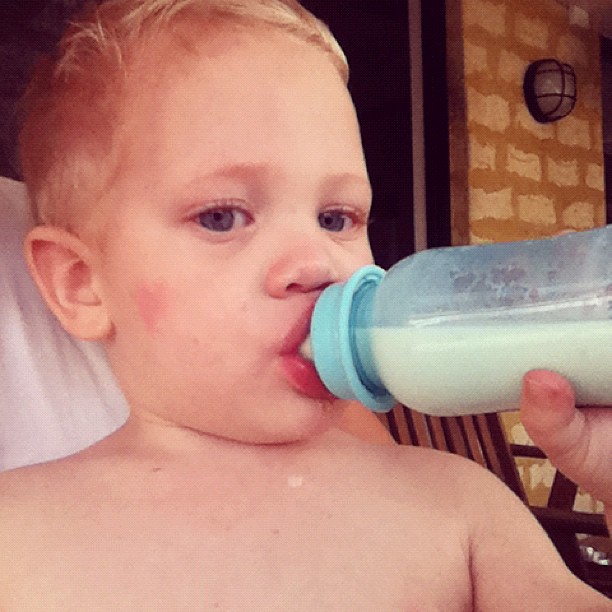 I walked into the kitchen to see this....Jacob and Marley chilling out, cute right?! They are on Jacob's security blanket, so Marley must be pretty darn special for Jakey to allow him to sleep on it!