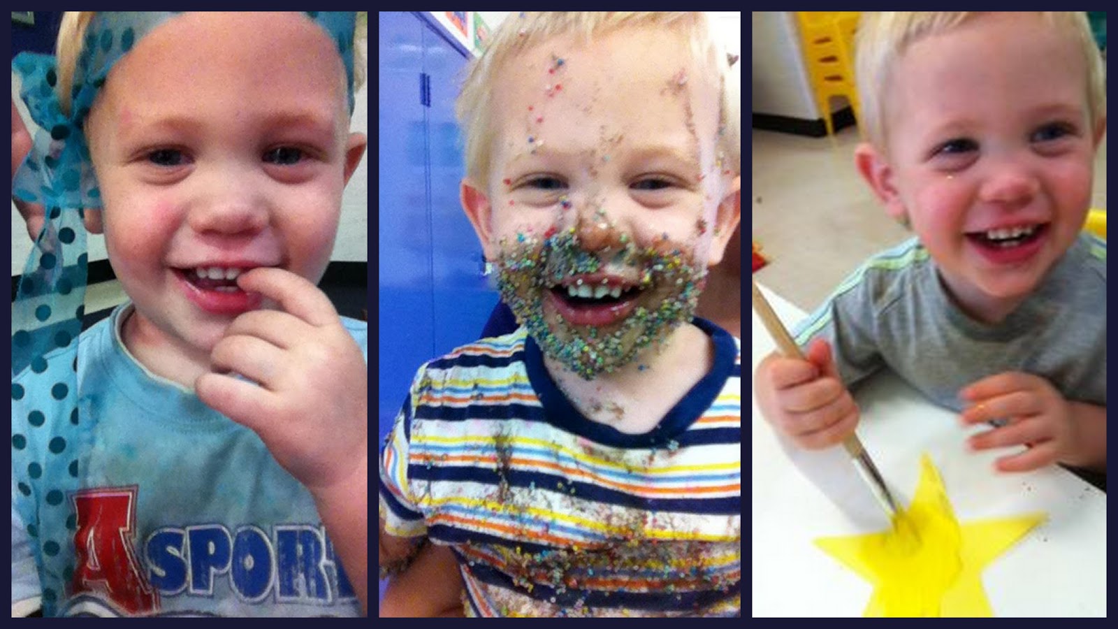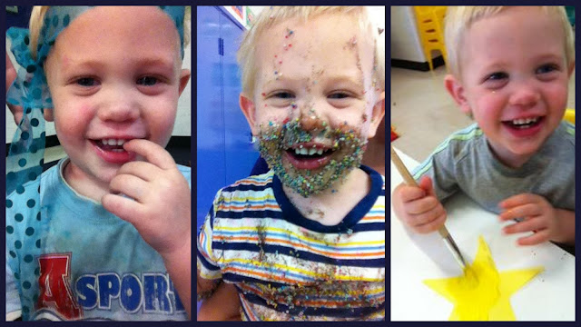 Here are some photos that Crystal has sent over this week... don't be alarmed by the middle photo! It was Jam + 100's and 1000's and "messy play". Jacob does 'messy play' pretty darn well! Apparently he was the only child that required a bath afterwards.. no surprise there. My boys don't do things half way :)
