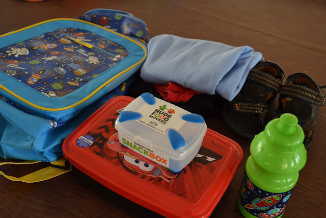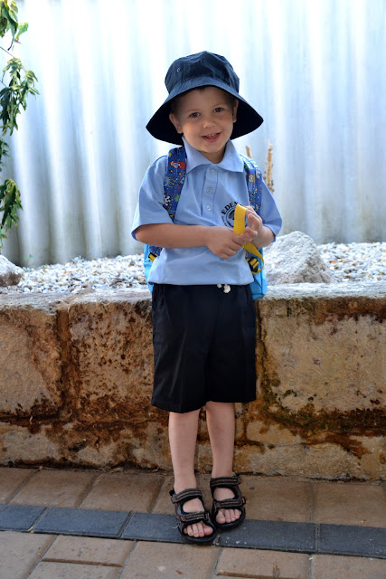 The night before the big day! This might be a shock to you all, but I do like to be organised :P Complete with new bag, lunch box and drink bottle.... and his smashing little uniform :)
