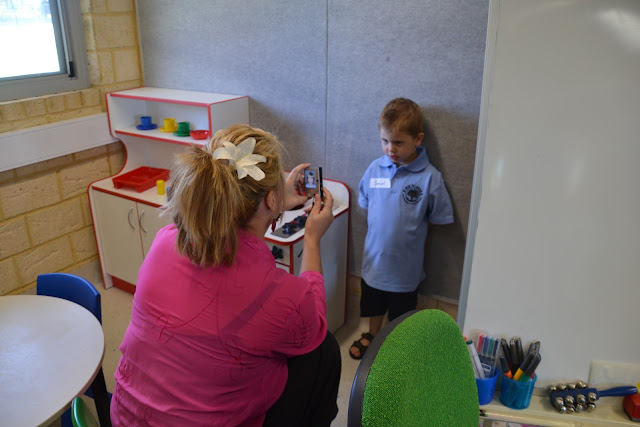 The time finally arrived to leave, and we drove the long 1.5 minutes it's takes to get to his new school :P where we met his teacher Mrs Austin, and the teacher's Aide Mrs Lewis. I loved them both the moment we met and so did Sam. He enjoyed telling Mrs Lewis that she had the same name as his Daddy :)