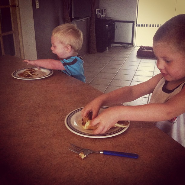 1. Me and the boys had pancakes for breakfast. It was fun! I earned serious brownie points by letting Lewy sleep in till almost 11am. :P