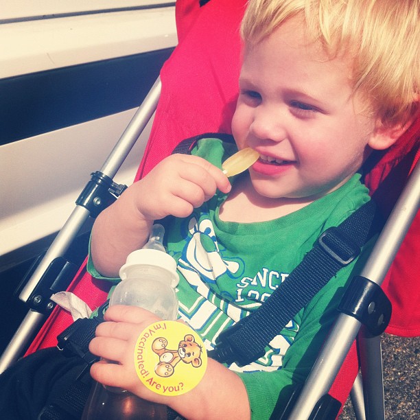 After that, I left Sam at school and took Jacob to get his immunisations. My boys are tough cookies! No tears, just hungry eyes on that lollipop!