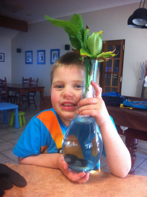 While I was busy pottering in the kitchen, Sam bought me some 'flowers' from the backyard.. that we put in a special vase :) He's so precious.